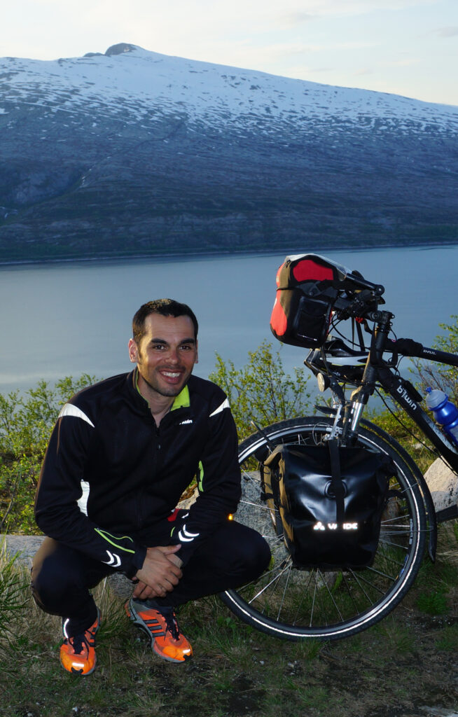 Enfant courir dans la nature me passionne plus que l’école, en échec scolaire, à 16 ans je débute ma vie professionnelle comme manœuvre. Celle-ci sera riche de nombreux métiers et je terminerai comme paysan éleveur. Mon chemin de vie fut encombré d’embûches, relever la tête fut ma conduite. Avec ma compagne, nous sommes un couple atypique avec nos 31 ans d’écart et nous décidons de nous libérer de toute attache matérielle pour partir vivre nos rêves en bohème. À vélo nous parcourons les routes d’Europe, à pied nous gravissons les montagnes de l’hexagone et d’ailleurs.